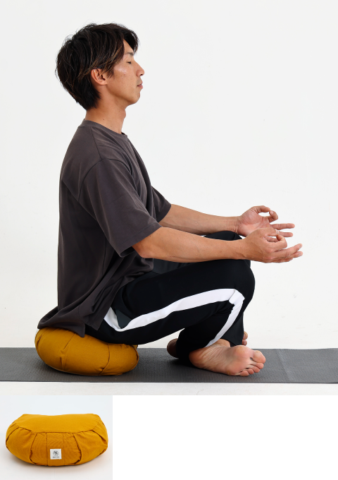 自然素材のやわらかさと、ていねいな縫製で仕立てた坐具は、 ゆったりとした安らぎをもたらし、あなたの呼吸を深く導きます。